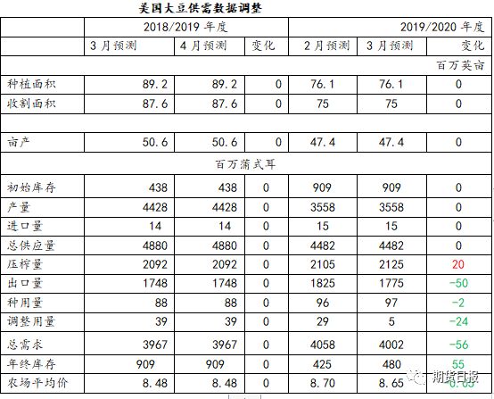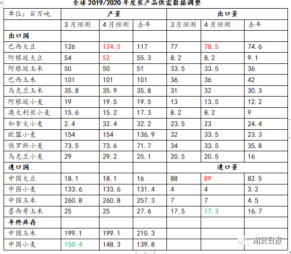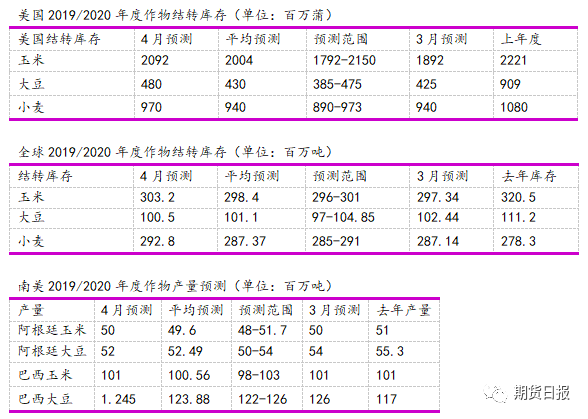北京时间2020年4月10日凌晨美国农业部公布4月份美国和全球谷物和油籽供需报告。