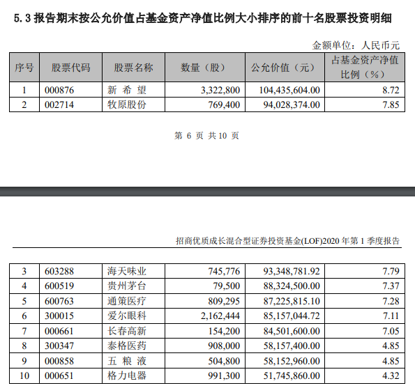 而由刘格菘管理的广发小盘成长混合基金则减仓,一季度末仓位为81.45%,较去年底的92.2%下滑了10个多百分点。前五大重仓股为康泰生物、中兴通讯、三安光电、亿纬锂能、中国软件。刘格菘在广发小盘成长写道,2020 年一季度,A 股市场受新冠疫情和海外市场震荡影响,波动幅度较大,基金主要配置了科技成长、医药生物、新能源等行业及部分优质消费公司,对医疗服务行业的配置有所增加。