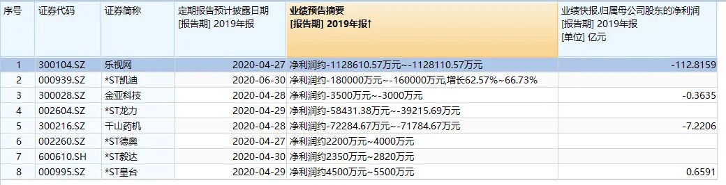 2019年暂停上市的公司中,从目前的业绩预告和快报来看,乐视网、*ST凯迪、金亚科技、*ST龙力、千山药机等2019年继续亏损,退市的可能性已经非常大。