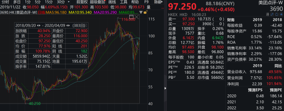 在二级市场,美团点评则依然获资金和机构的认可。数据显示,上市五年来,尽管美团持续烧钱和亏损,但股价则持续维持增长状态,上市至今股价飙升超40%,最高触及116港元。截至目前,美团点评市值已经超5600亿港元。